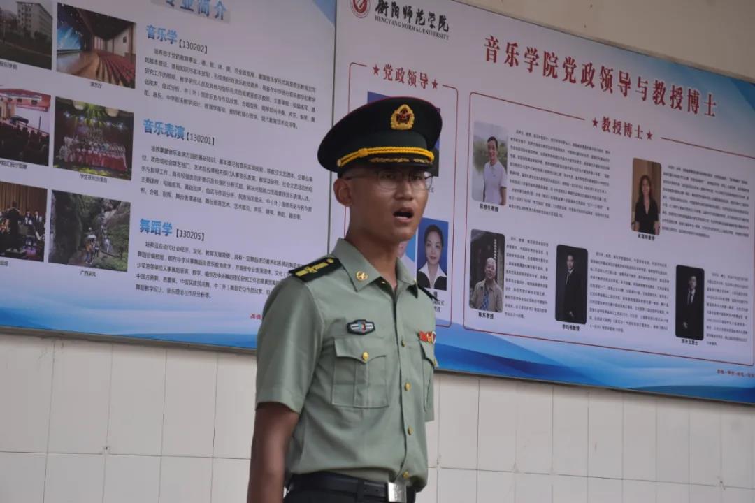 随后,陈书记请出了本次军训的教官,教官们身着整洁的军装,迈着稳健的步伐,使得现场有些喧闹的气氛顿时严肃起来。随后,十一营李延龙教官为参训教官代表对同学们表达出对关心与期望,同时提出了军训过程中严格的纪律要求。