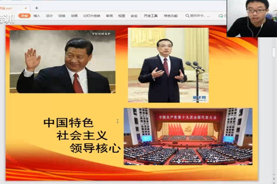 黄老师向同学们介绍中国特色社会主义领导核心