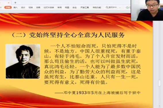 黄老师讲解党为人民服务的宗旨